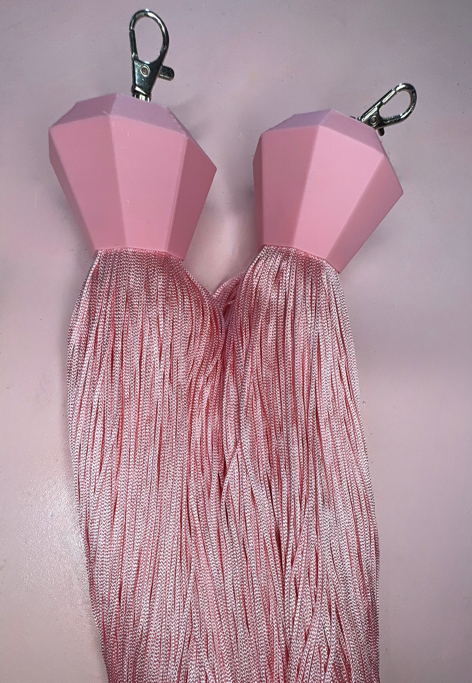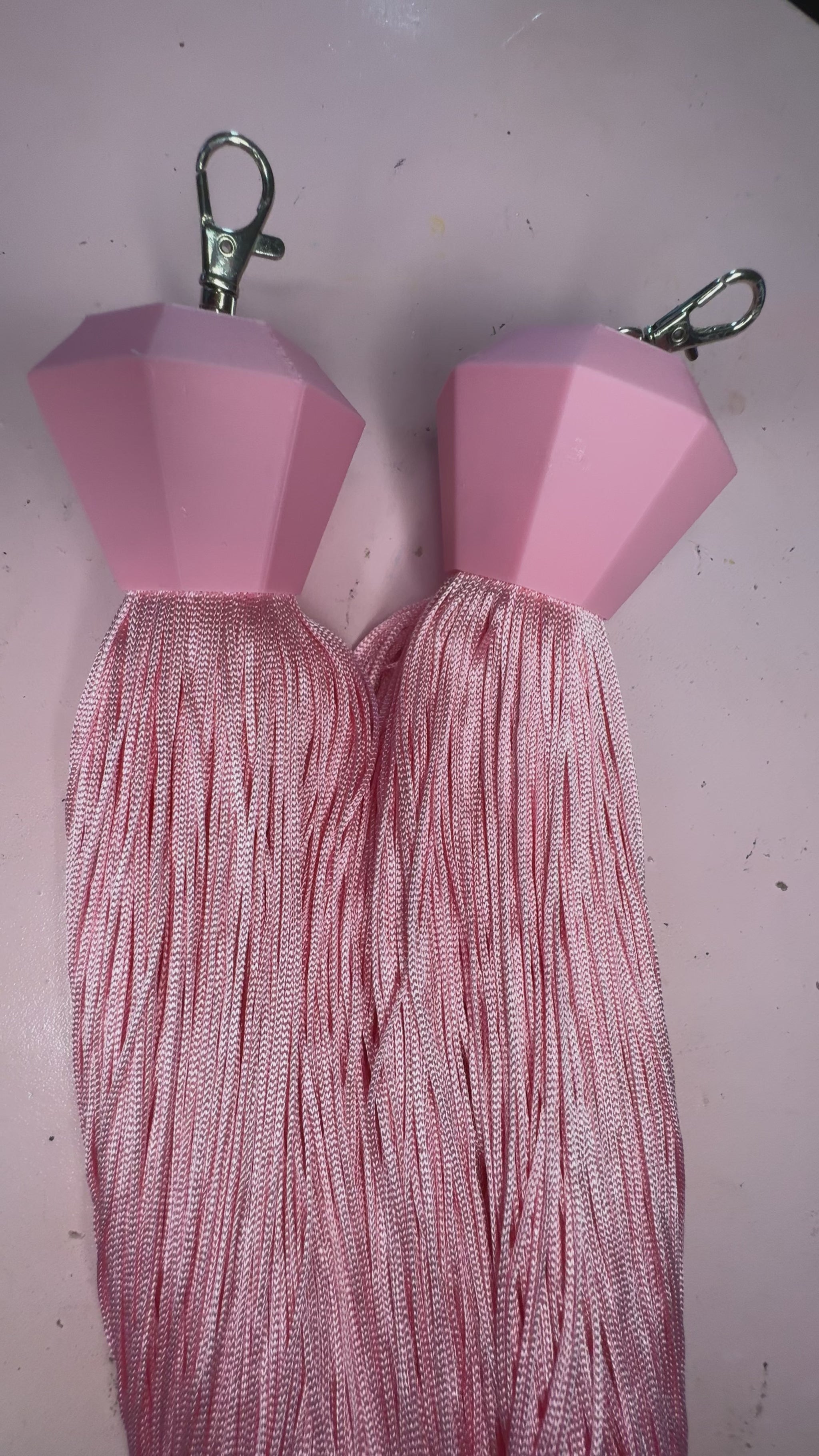 Boa Tassels feature fringe, tassel toppers and the hardware needed. The hardware will be either Silver or Gold large lobster clasp. If you need a mix of rhinestone colors, please notate or tassels will be rhinestoned the color of the fringe.
